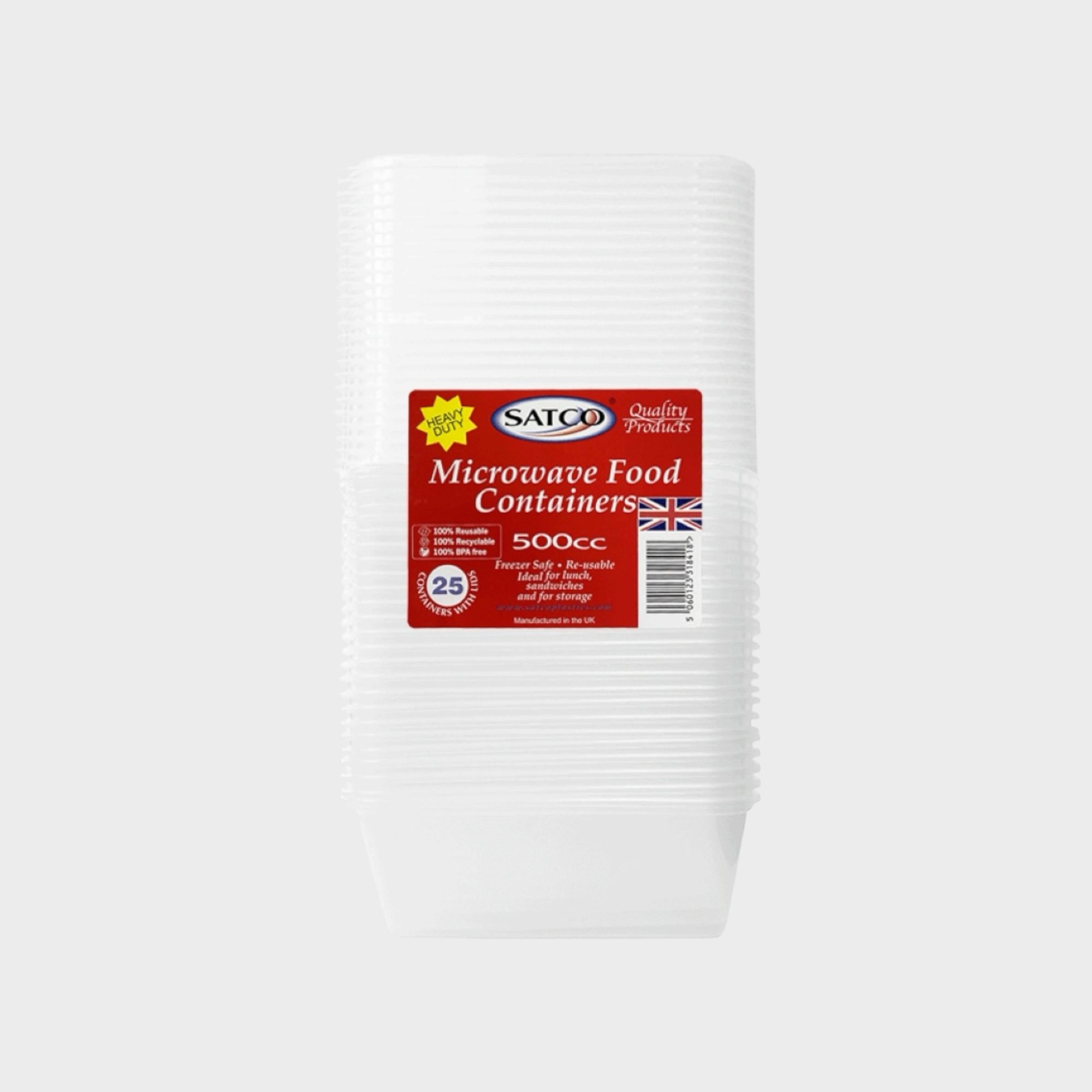 SATCO MICROWAVE FOOD CONTAINERS W/LIDS 500CC PK25