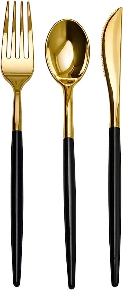 UNIQUE METALLIC GOLD & BLACK PLASTIC CUTLERY PK12