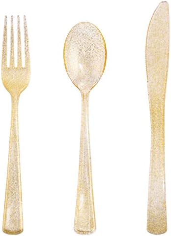 UNIQUE ASST GOLD GLITTER CUTLERY 18 ASST