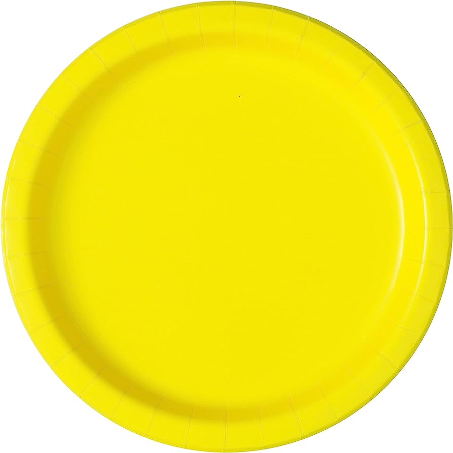 UNIQUE 9″ NEON YELLOW DISPOSABLE ROUND PLATES PK16