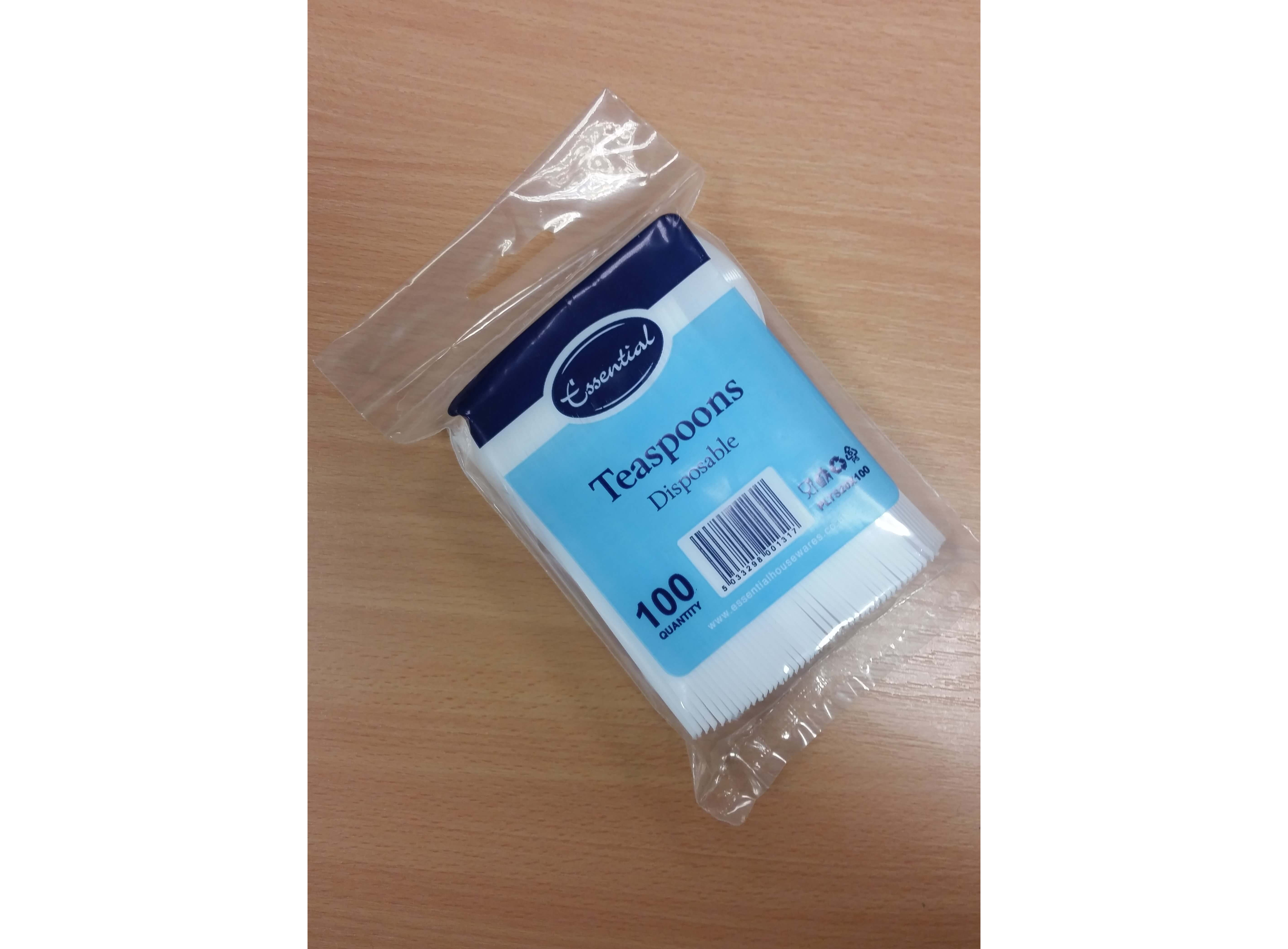ESSENTIAL WHITE PLASTIC TEASPOONS PK100