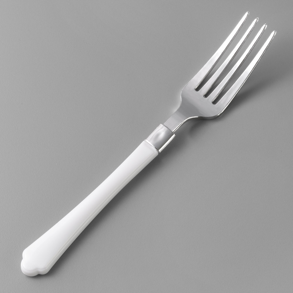 12 SILVER LOOK FORKS “12 Silver Look Forks with White Handles” offers a set of 12 disposable forks featuring a…