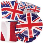 46-Piece Union Jack VE Day Celebration Tableware Set – Table Cover, Plates, Cups & Napkins Celebrate VE Day in true…