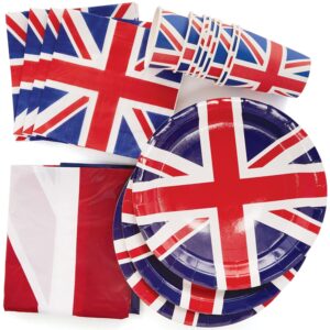 46Pcs Union Jack VE Day Celebration Tableware Set Table cover Plate Cup Napkin quantity