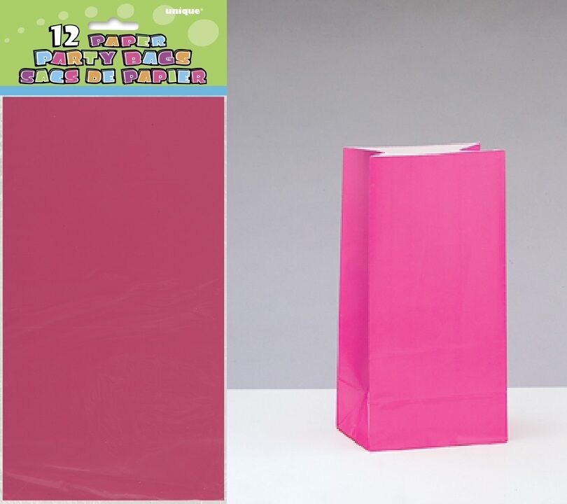 12 PAPER PARTY BAGS HOT PINK