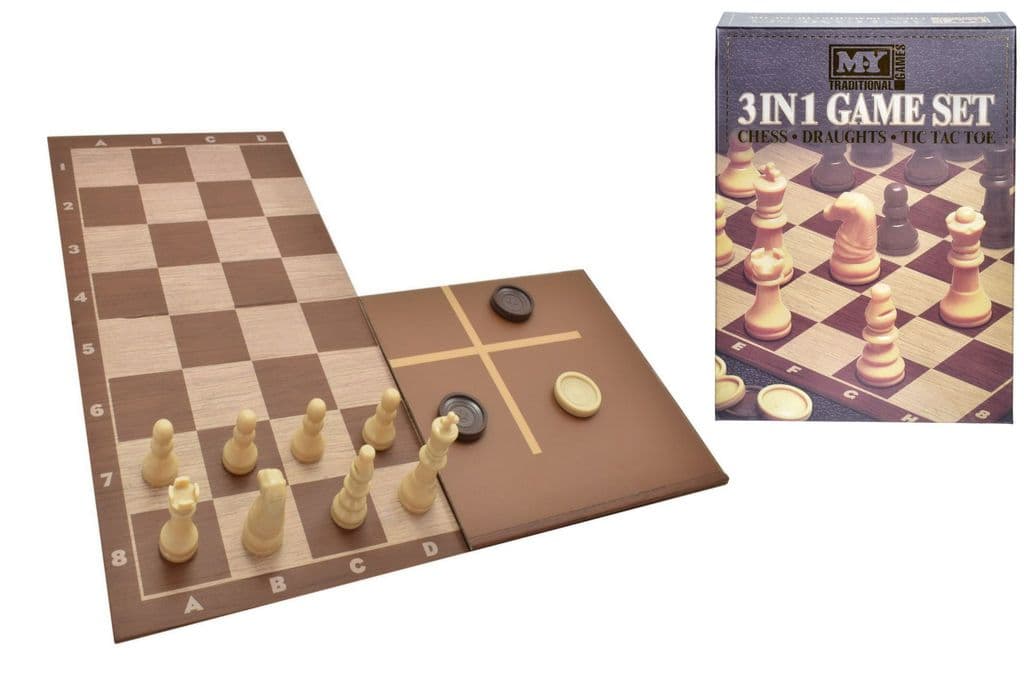 M.Y Traditional Games 3-in-1 Set: Chess, Draughts (Checkers), Tic Tac Toe: