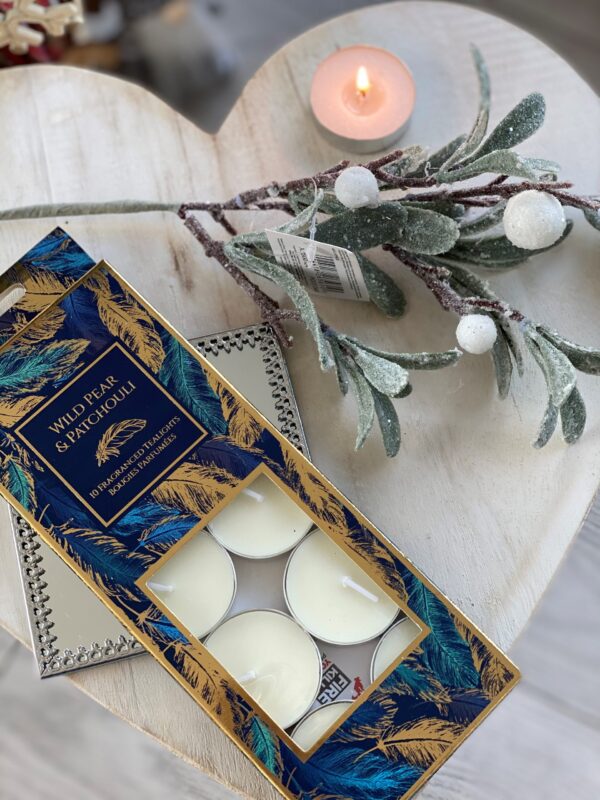 FEATHER SCENTED TEALIGHTS PK10 (Wild Pear & Patchouli).