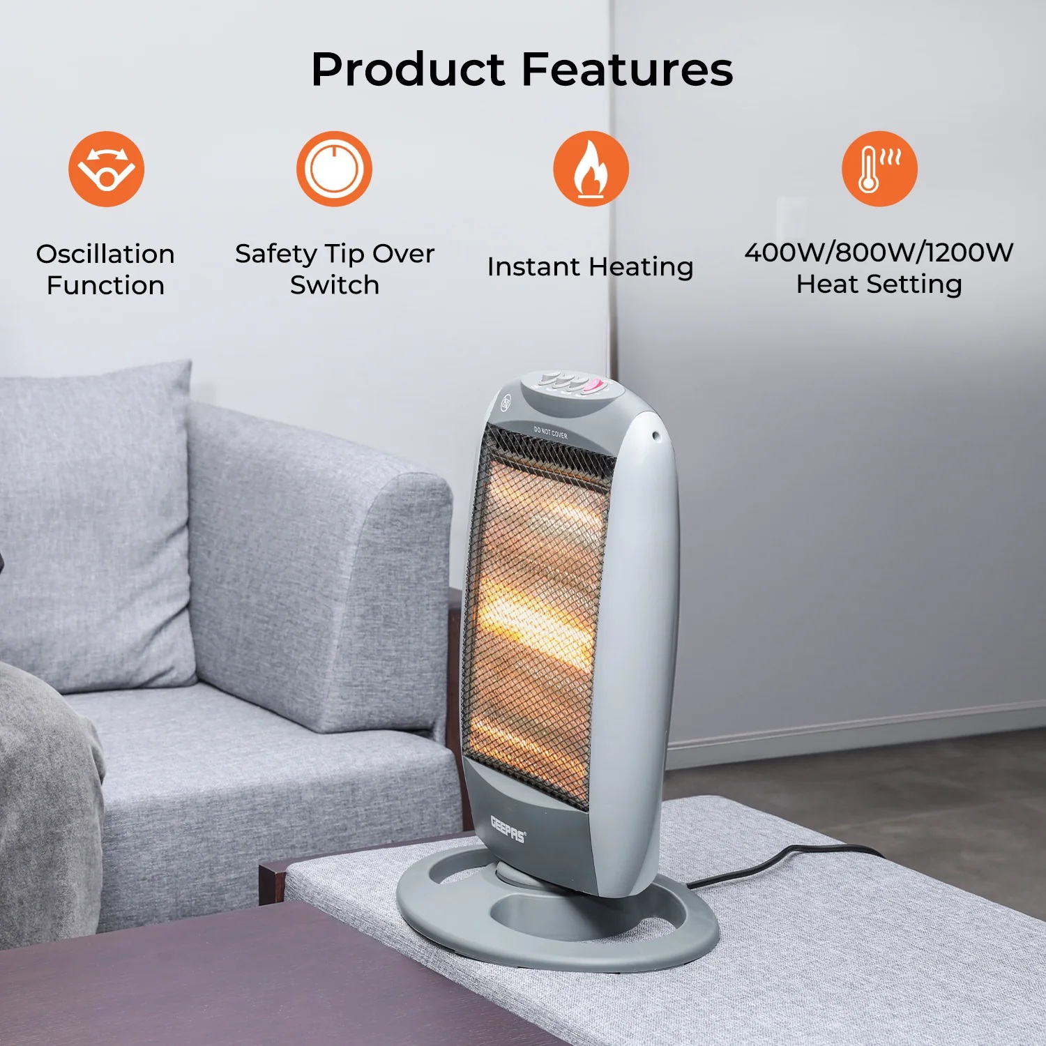 - Safety Features: GEEPAS Halogen Heaters may include safety features such as overheating protection, tip-over protection, and cool-touch exteriors.
