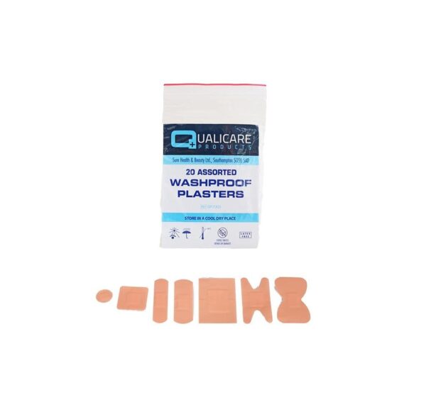 • Qualicare Products 20 Assorted Washproof Plasters: Essential washproof plasters for everyday use.