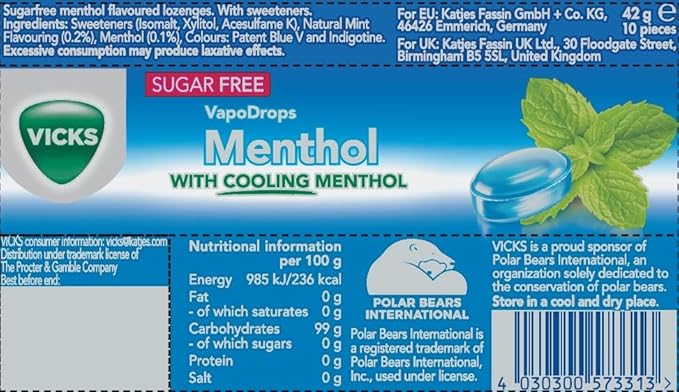 Product Description: VICKS TripleAction Lozenges Menthol (Pack of 24, 42g Each)